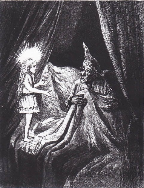 In Charles Dickens' famous A Christmas Carol, Ebenezer Scrooge is a greedy merchant oppressing his workers, squeezing profit out of everything, and isolating himself from social relationships. Through the famous progression of visits from three ghosts, he comes to see the error of his ways. As he returns to his regular life, he commits to moving forward in a more just and generous way.